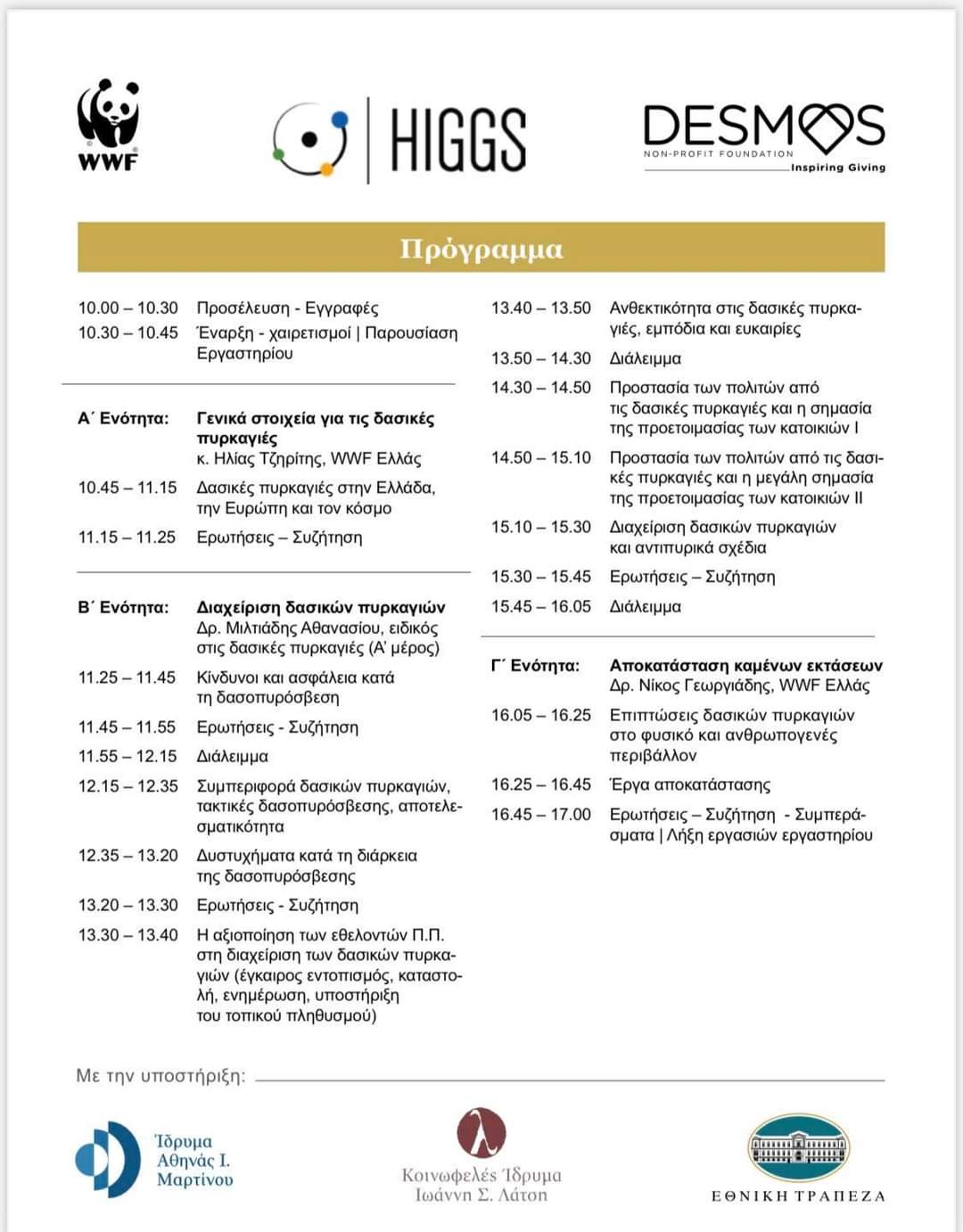 Αναλυτικά το πρόγραμμα για το εκπαιδευτικό εργαστήριο “Πρόληψη και αντιμετώπιση δασικών πυρκαγιών και αποκατάσταση καμένων