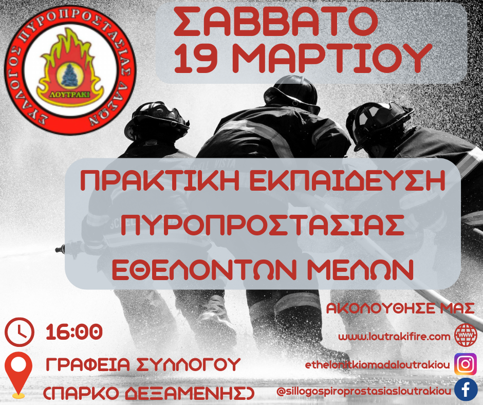 Το Σάββατο 19 Μαρτίου στις 16:00, ο Εθελοντικός Σύλλογος Πυροπροστασίας Δασών Λουτρακίου – Περαχώρας πραγαμτοποιεί