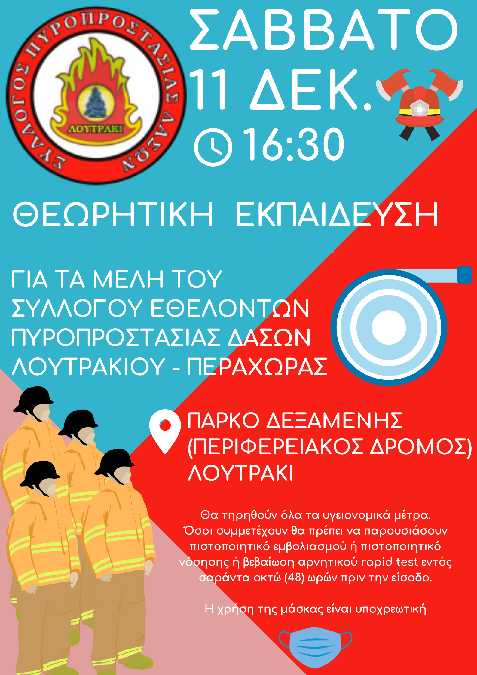 Το Σάββατο 11 Δεκεμβρίου και ώρα 16:30, ο Σύλλογος Εθελοντών Πυροπροστασίας Δασών Λουτρακίου – Περαχώρας