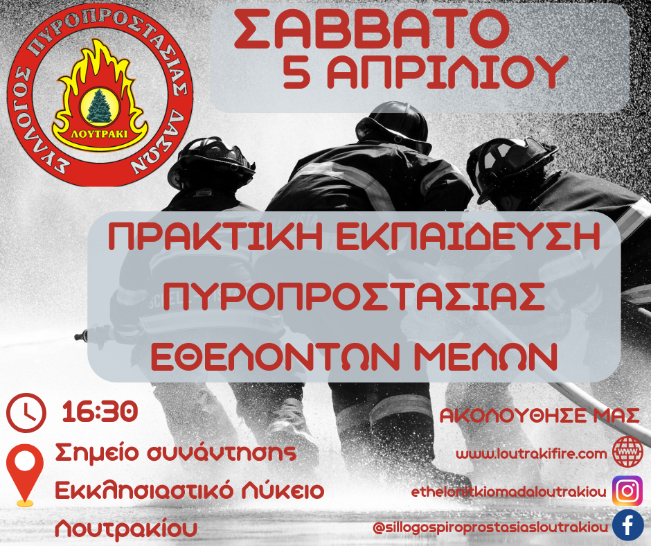 Το Σάββατο 5 Απριλίου, θα πραγματοποιηθεί πρακτική εκπαίδευση για τα Μέλη του Συλλόγου μας. Η