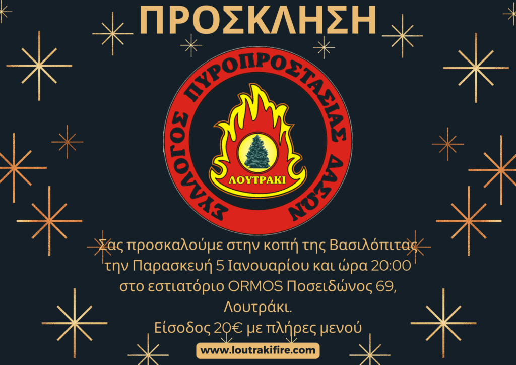 Την Παρασκευή 5 Ιανουαρίου και ώρα 20:00, το Δ.Σ. και τα Μέλη του Συλλόγου Εθελοντών Πυροπροστασίας Δασών Λουτρακίου Περαχώρας,